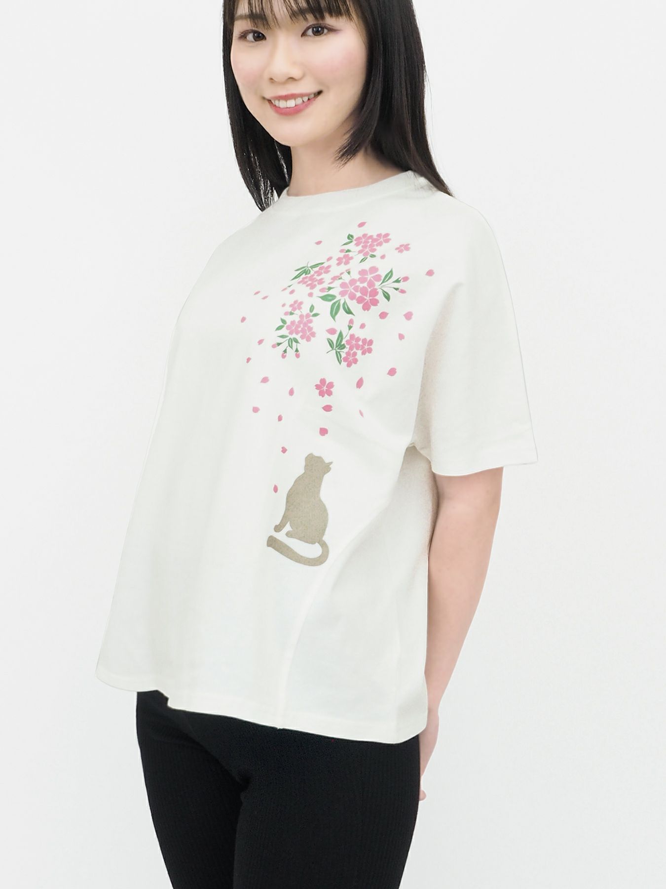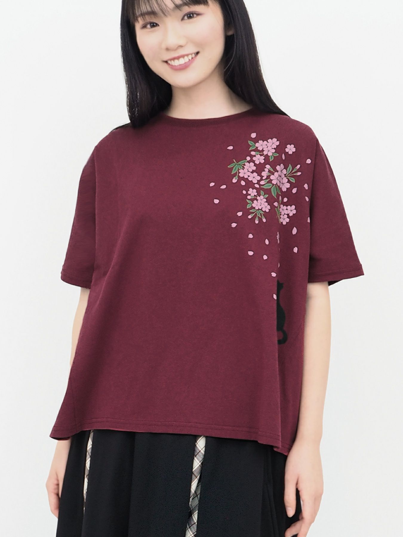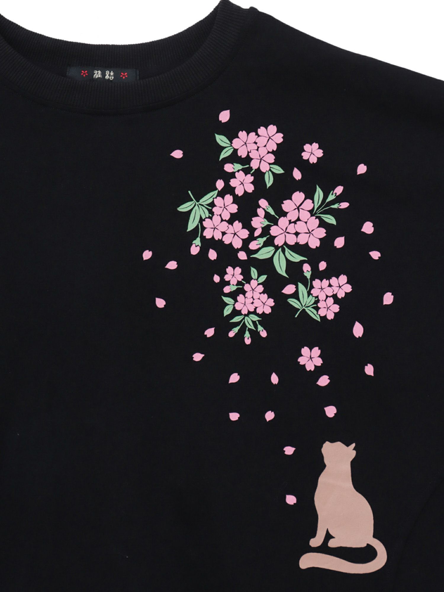 - ≪35%OFF≫【雅結】桜と猫プリント ドルマンプルオーバー≪返品・取寄対応不可≫