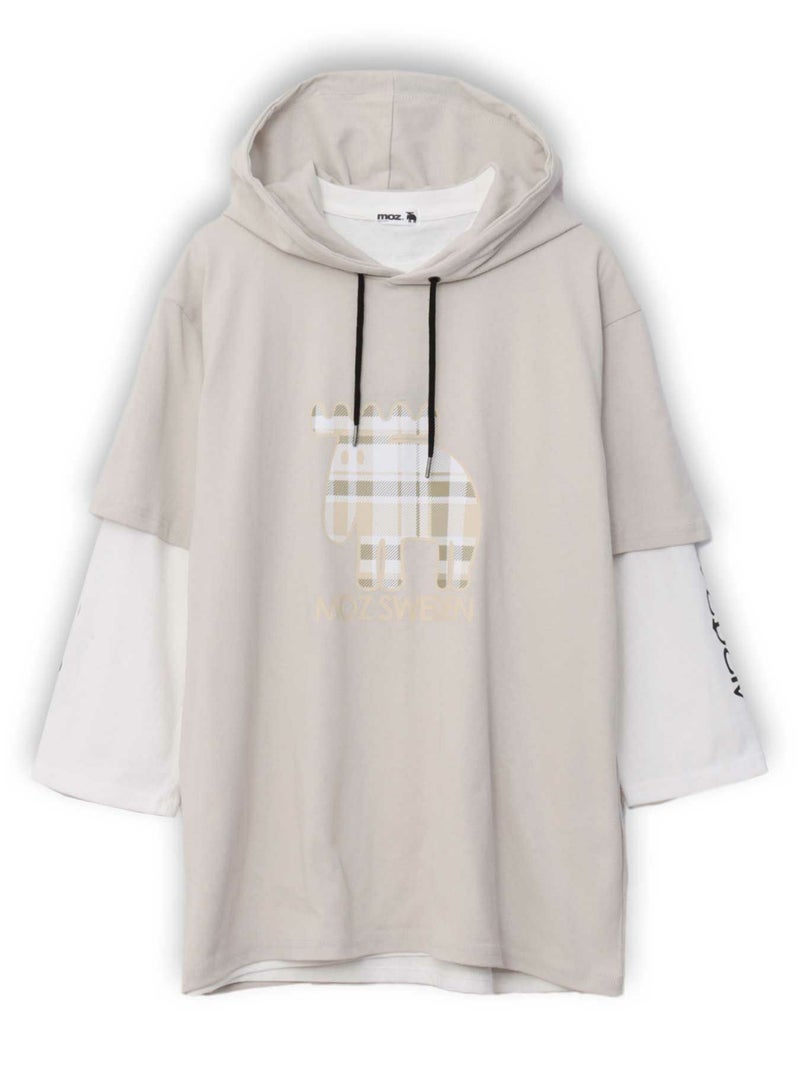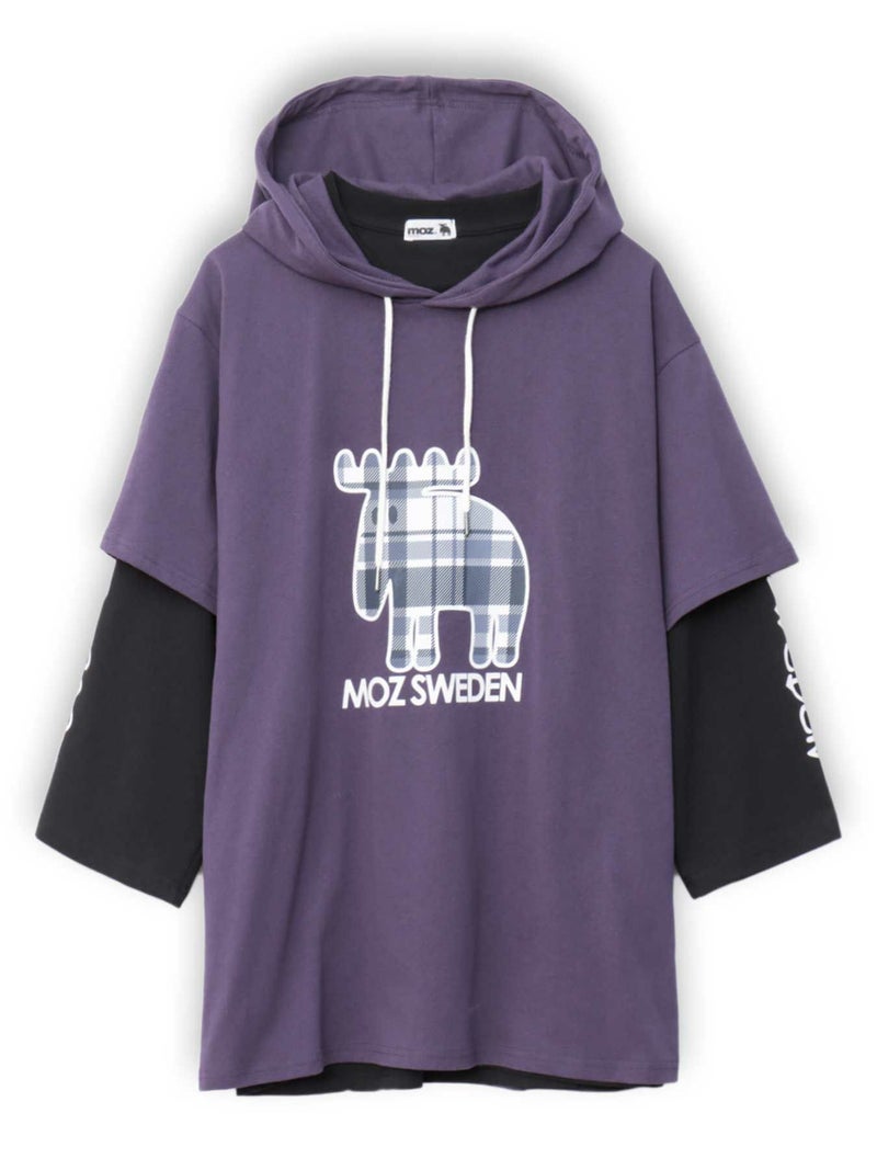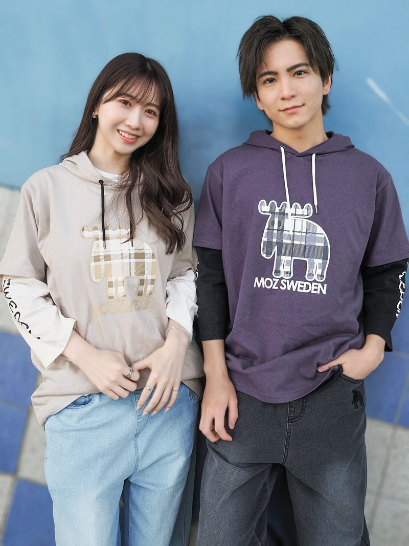 - ≪17%OFF≫【moz】チェックエルクプリント 半袖TEEパーカー×7分袖Tシャツ アンサンブル〔別注〕≪返品・取寄対応不可≫
