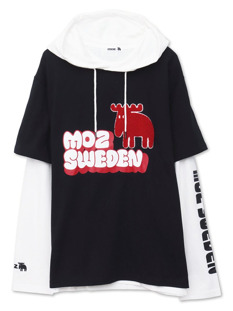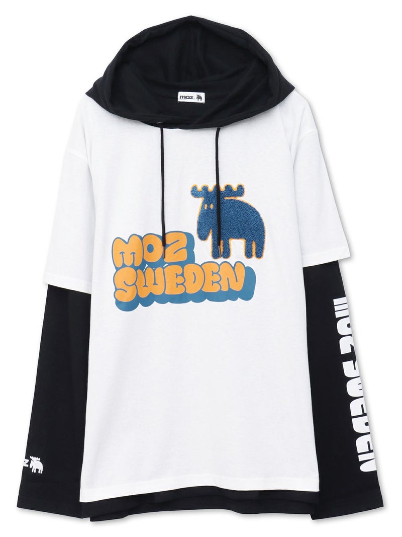 4. 【moz】エルク サガラ刺繍入りレイヤードプルパーカー〔別注〕