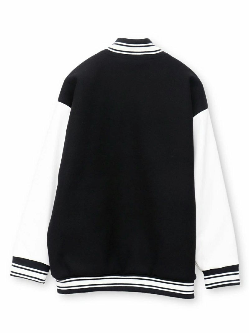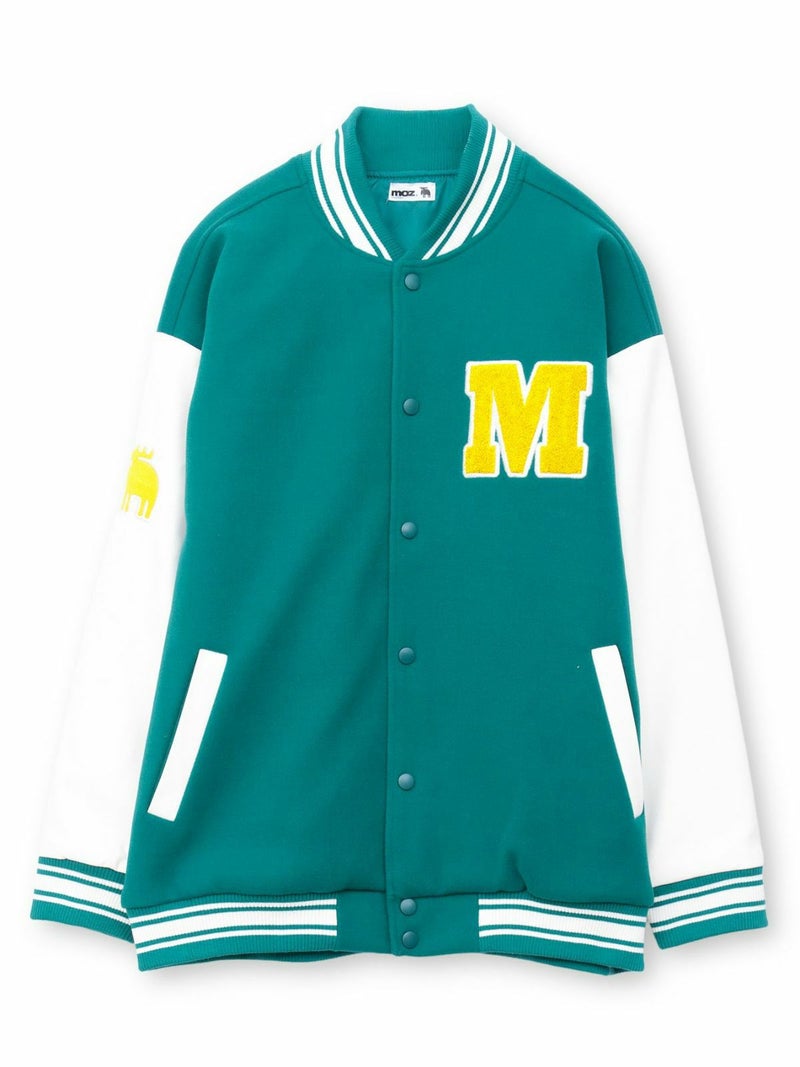 今回のスタジャンは袖部分を合成皮革を使用することで、よりリアルなスタジャンの雰囲気を再現しました。 表面には「moz」のブランドネームの「M」をサガラ刺繍で配置し、右袖部分にエルクを配置し、シンプルながらも可愛い仕上がりになっています。