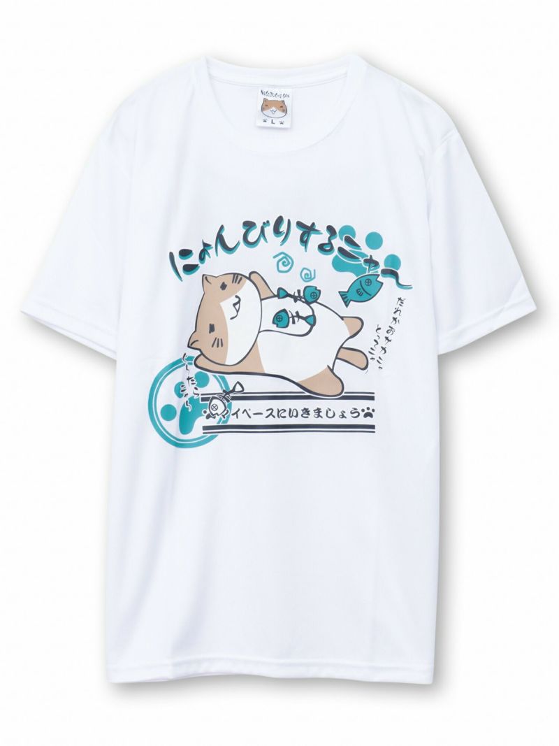5. 【NECOBUCHI-SAN】“にょんびりするニャ~”猫渕さんプリントDRYメッシュ素材Tシャツ