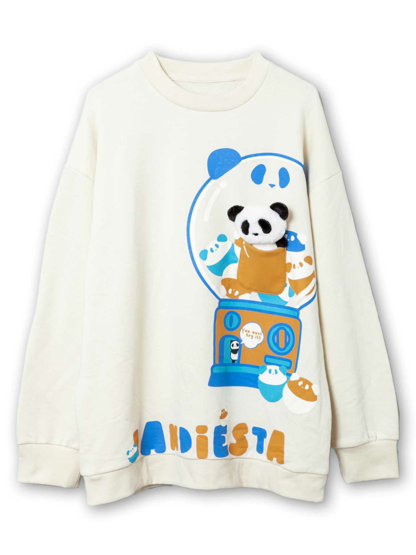 - ≪30%OFF≫【PANDIESTA JAPAN】“ガチャパンダ”ぬいぐるみ付きBIGシルエット トレーナー≪返品・取寄対応不可≫