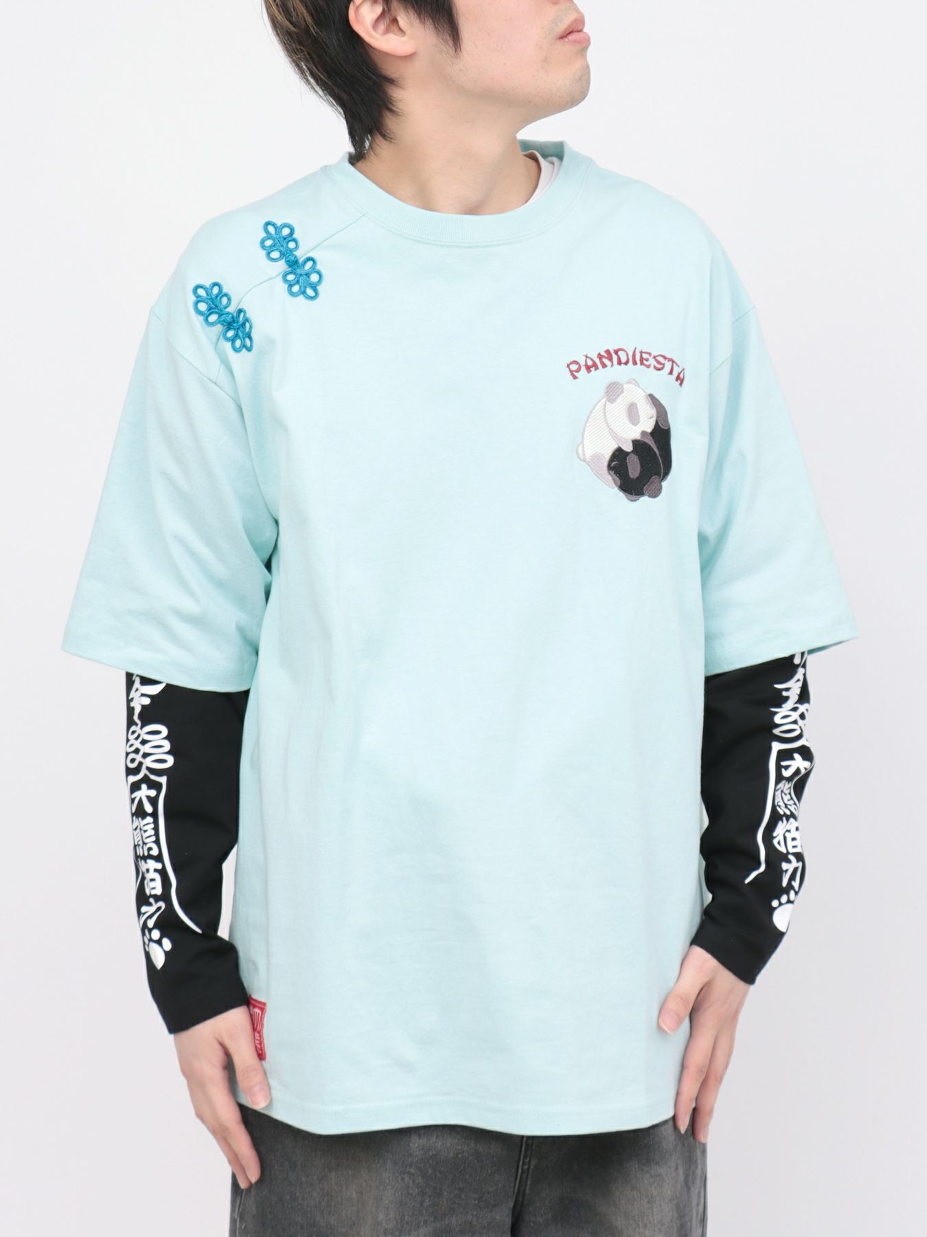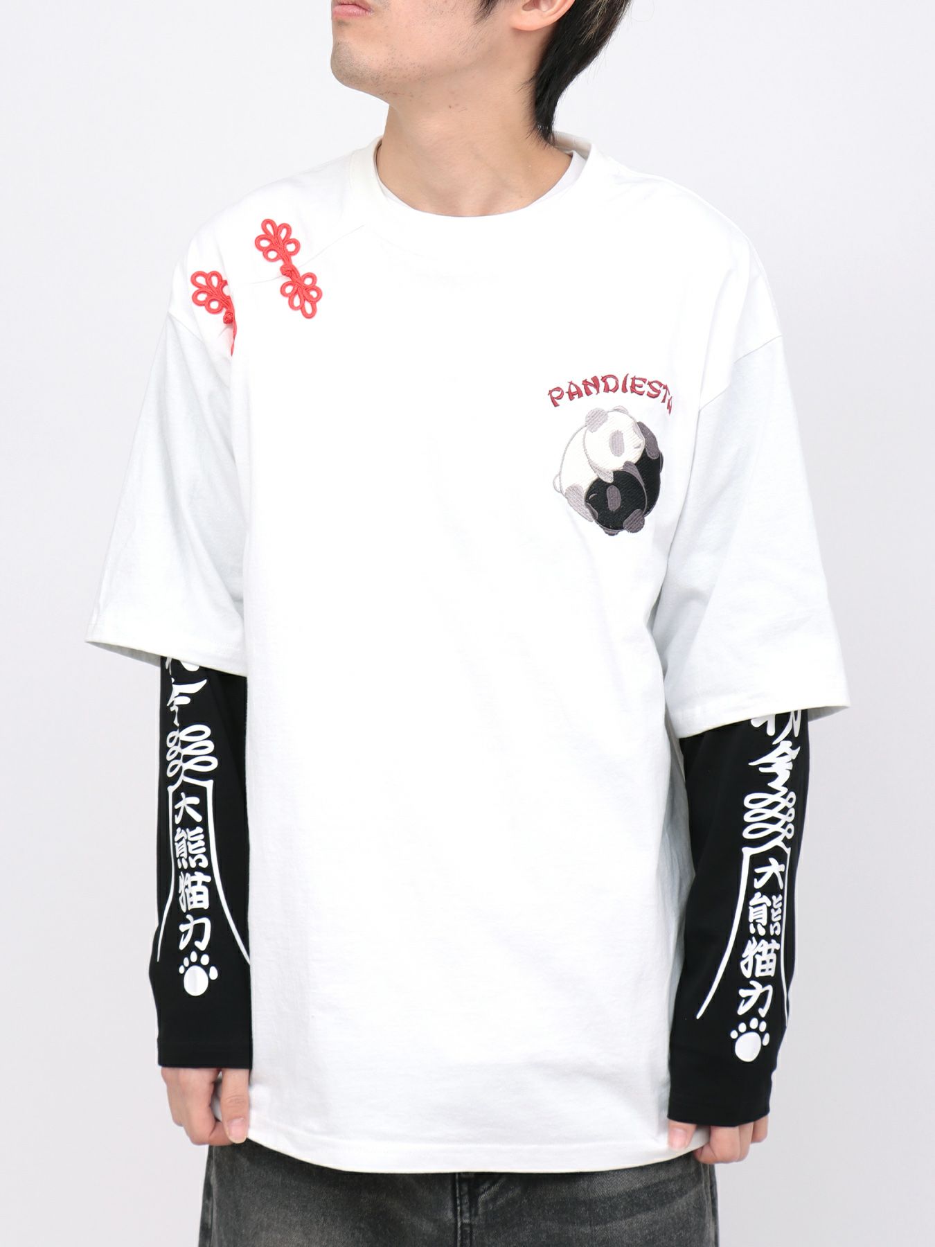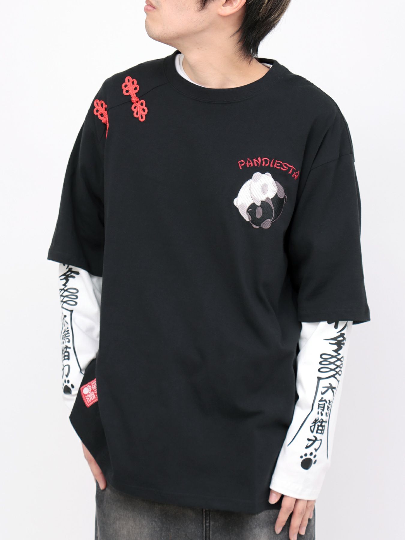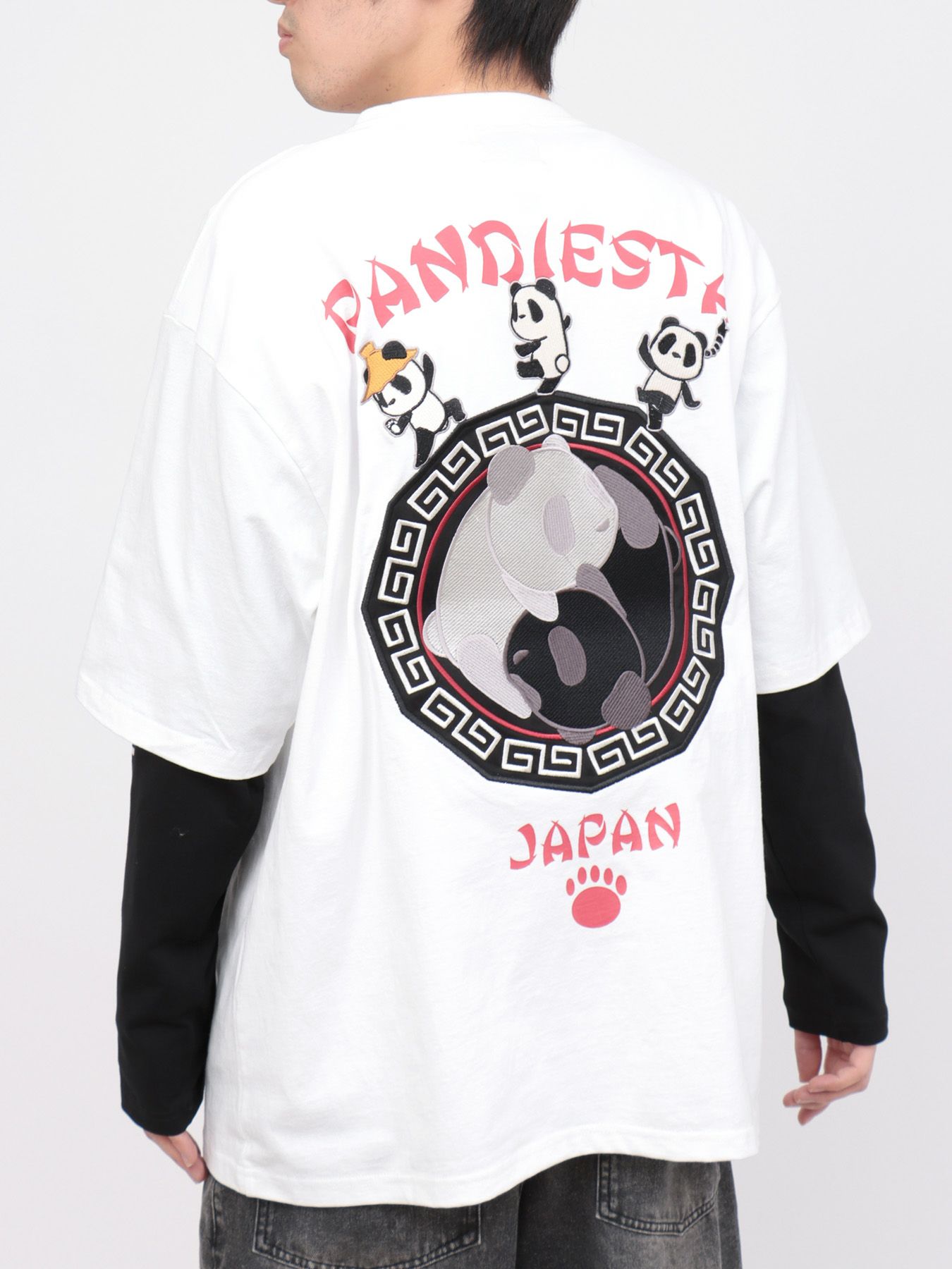 - 【PANDIESTA JAPAN】“太陰太極パンダ”BIGシルエット フェイクレイヤードロンT