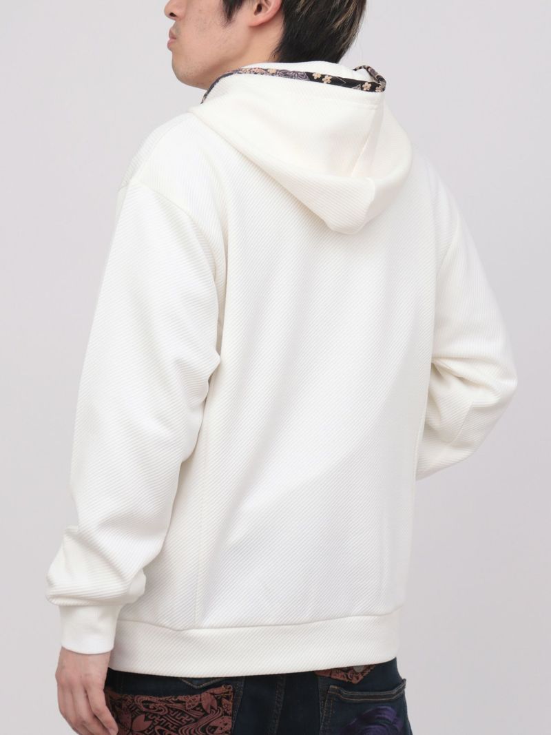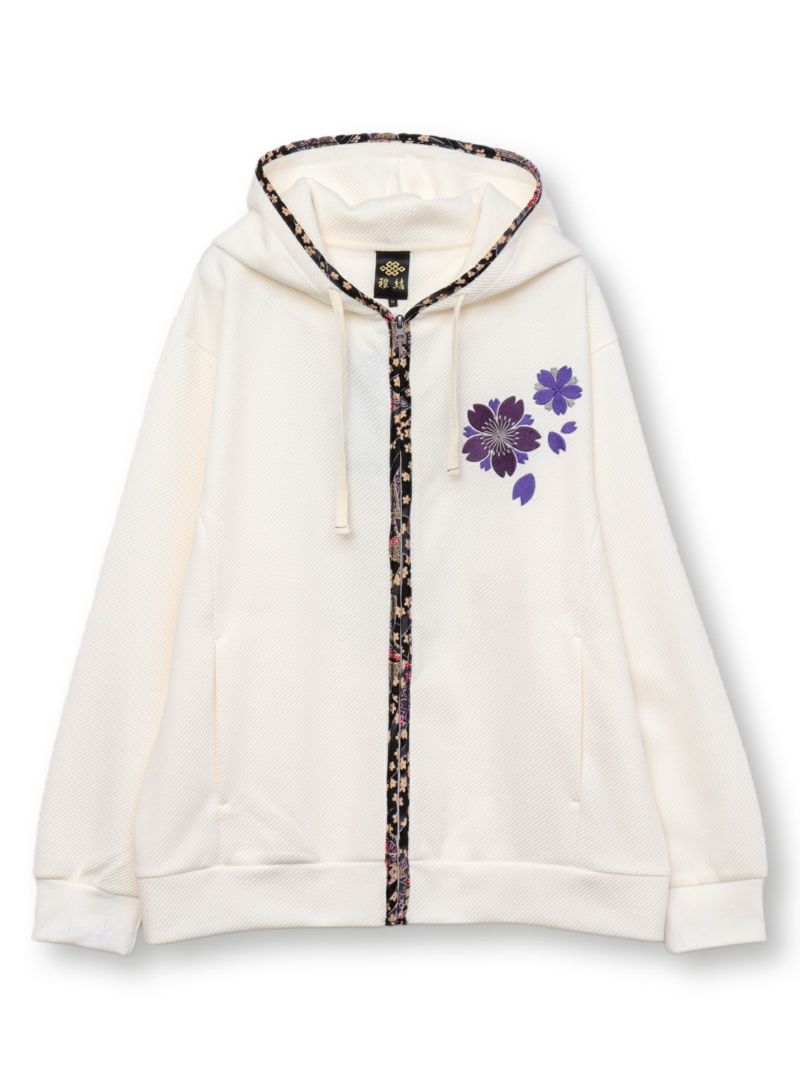 - ≪25%OFF≫【雅結】桜刺繍ふくれジャガード素材 和生地遣いZIPパーカー≪返品・取寄対応不可≫