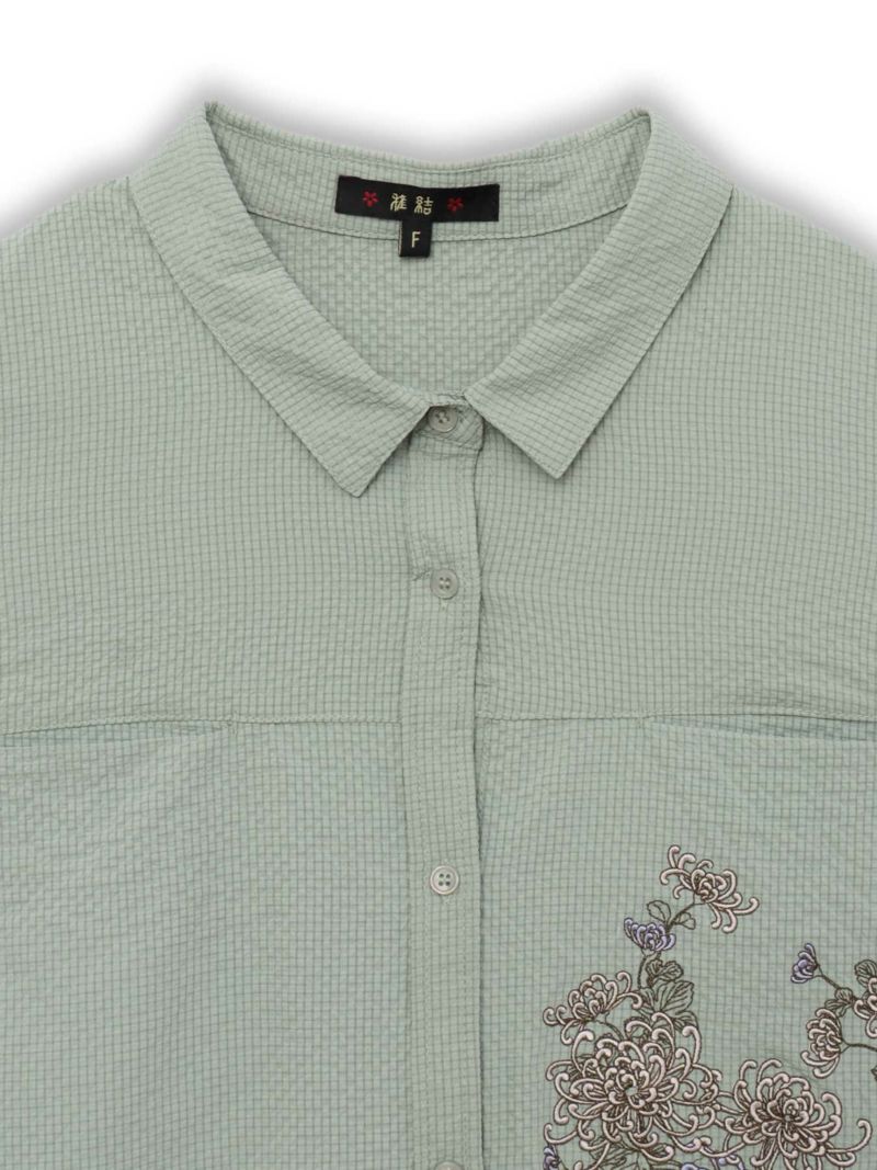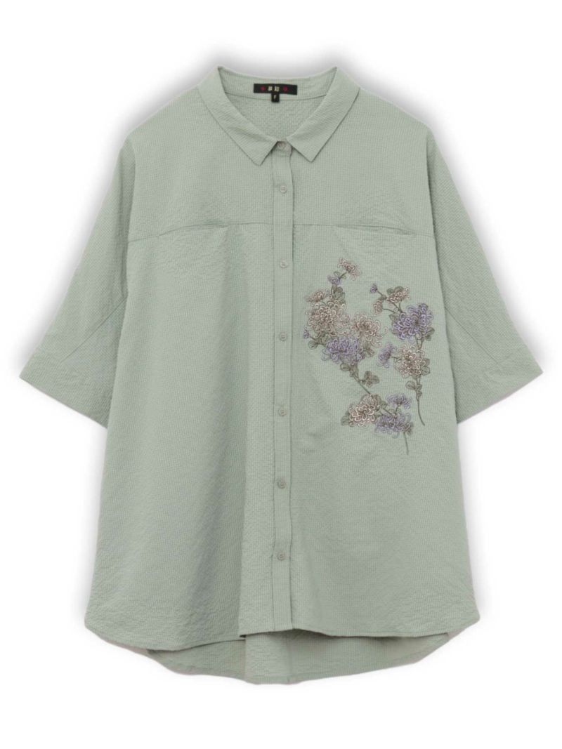 - ≪30%OFF≫【雅結】菊刺繍サッカー素材ドルマンシャツ≪返品・取寄対応不可≫