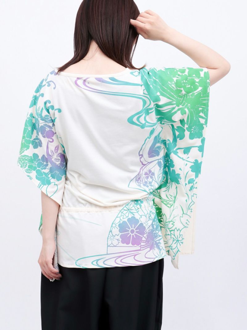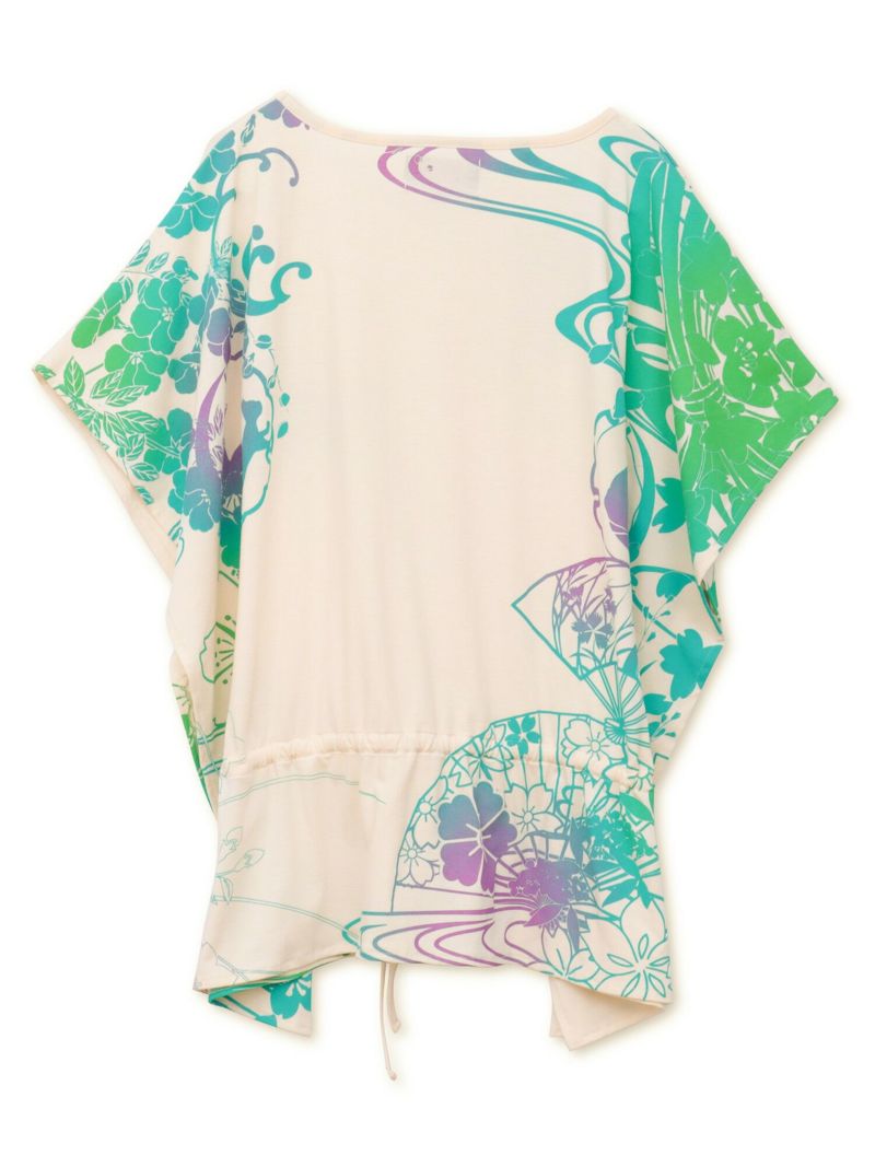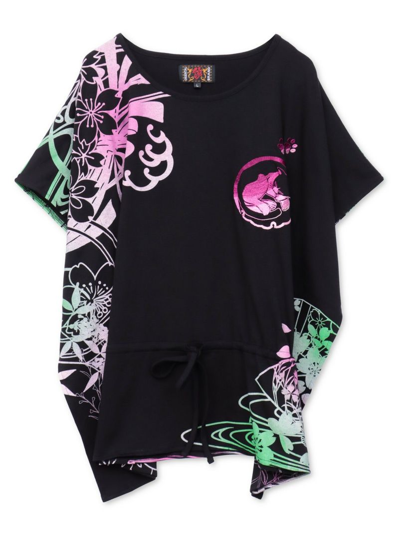- ≪30%OFF≫【錦】“眠り猫”グラデーションプリント 刺繍入りドルマンチュニック〔別注〕≪返品・取寄対応不可≫