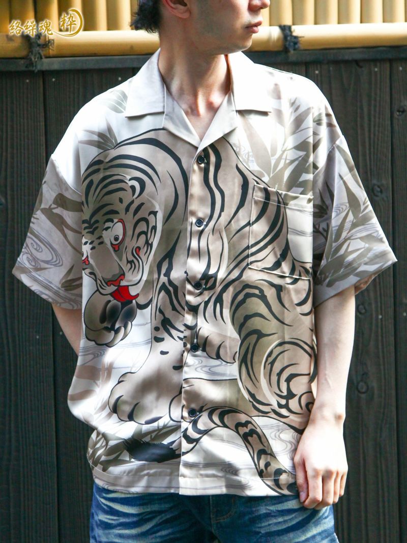 - ≪50%OFF≫【絡繰魂・粋】“虎図-若冲-”昇華転写プリントBIGシルエット半袖シャツ≪返品・取寄対応不可≫
