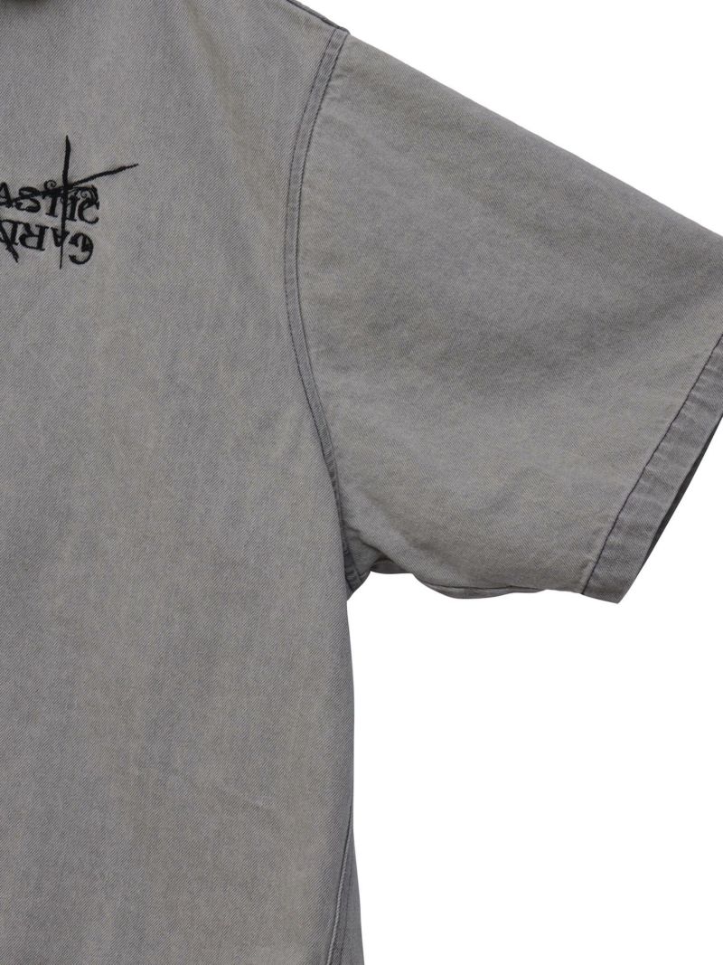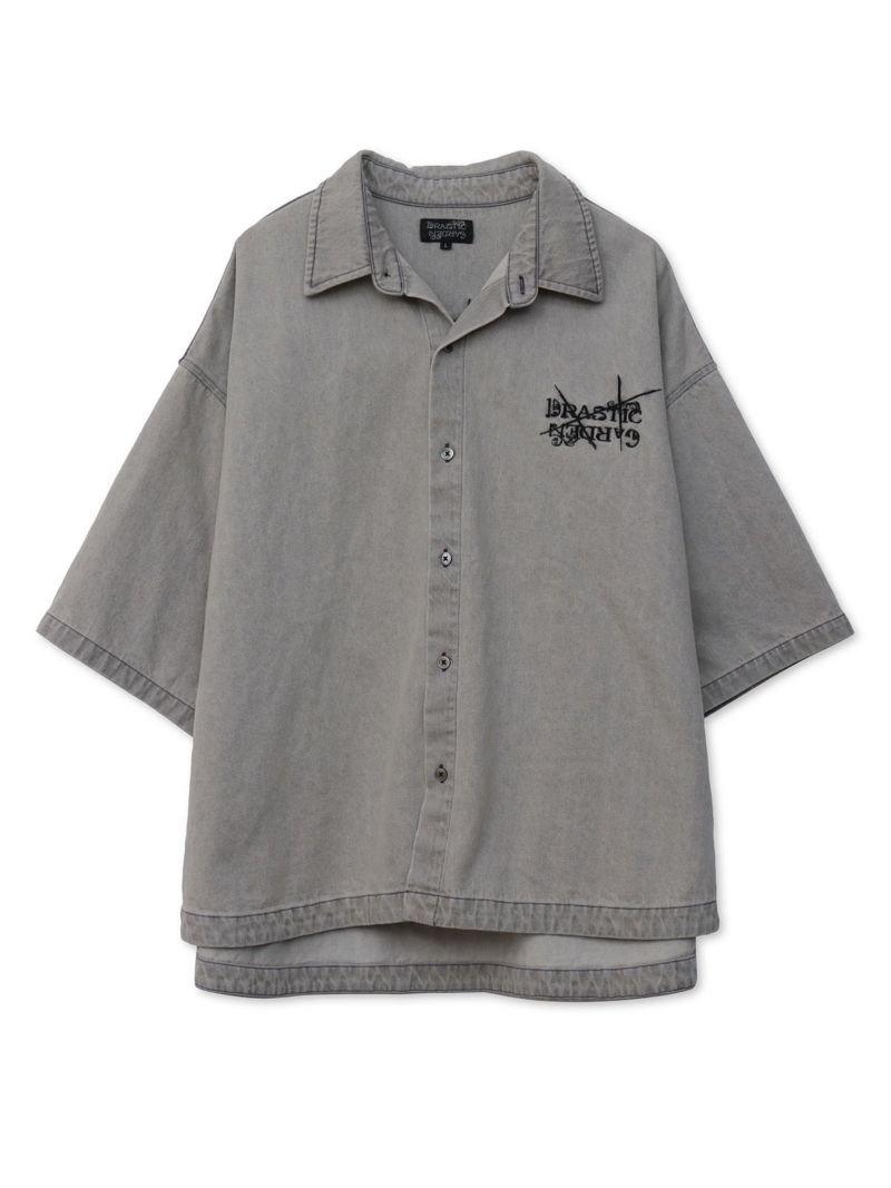 - ≪30%OFF≫【DRASTIC GARDEN】“フェザーダリア”総刺繍 半袖デニムシャツ≪返品・取寄対応不可≫