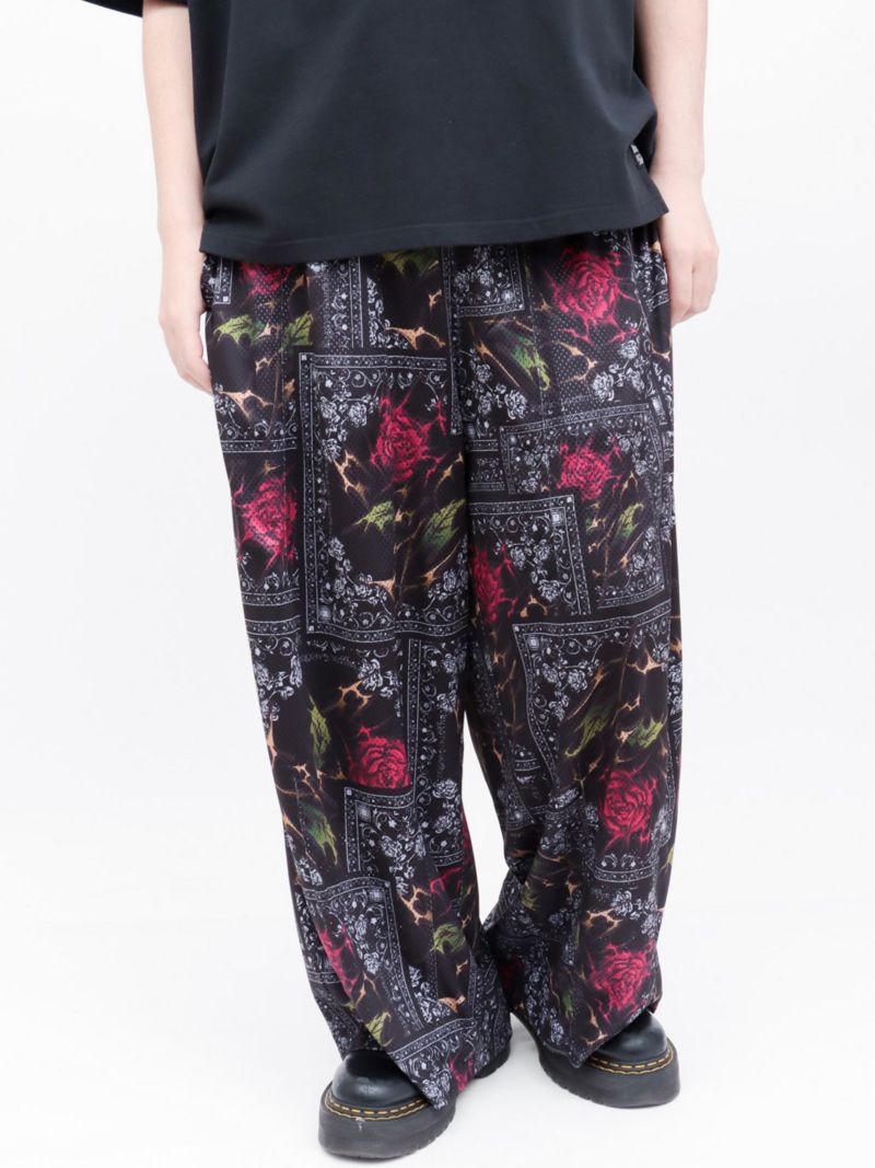 - ≪30%OFF≫【DRASTIC GARDEN】“稲妻の薔薇”メッシュ素材バンダナ総柄ワイドパンツ≪返品・取寄対応不可≫