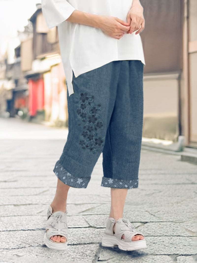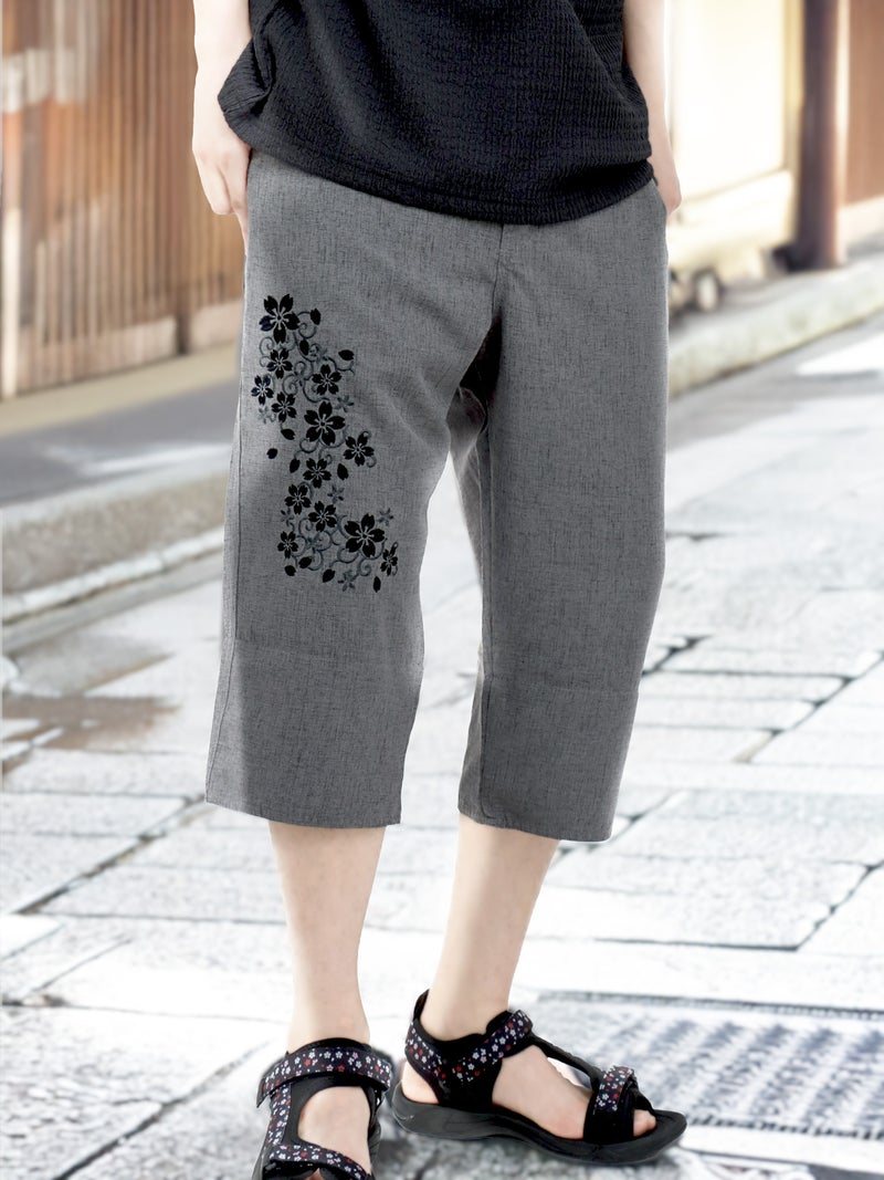 - ≪30%OFF≫【雅結】桜唐草刺繍シャンブレー素材クロップドパンツ≪返品・取寄対応不可≫
