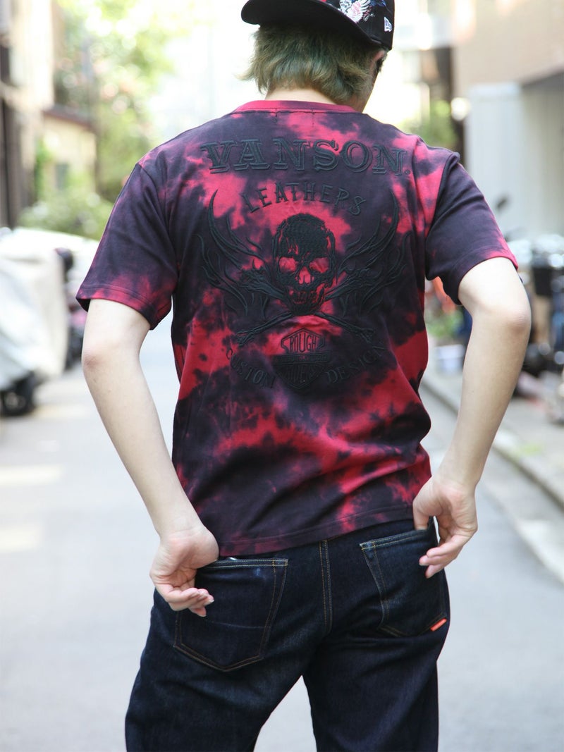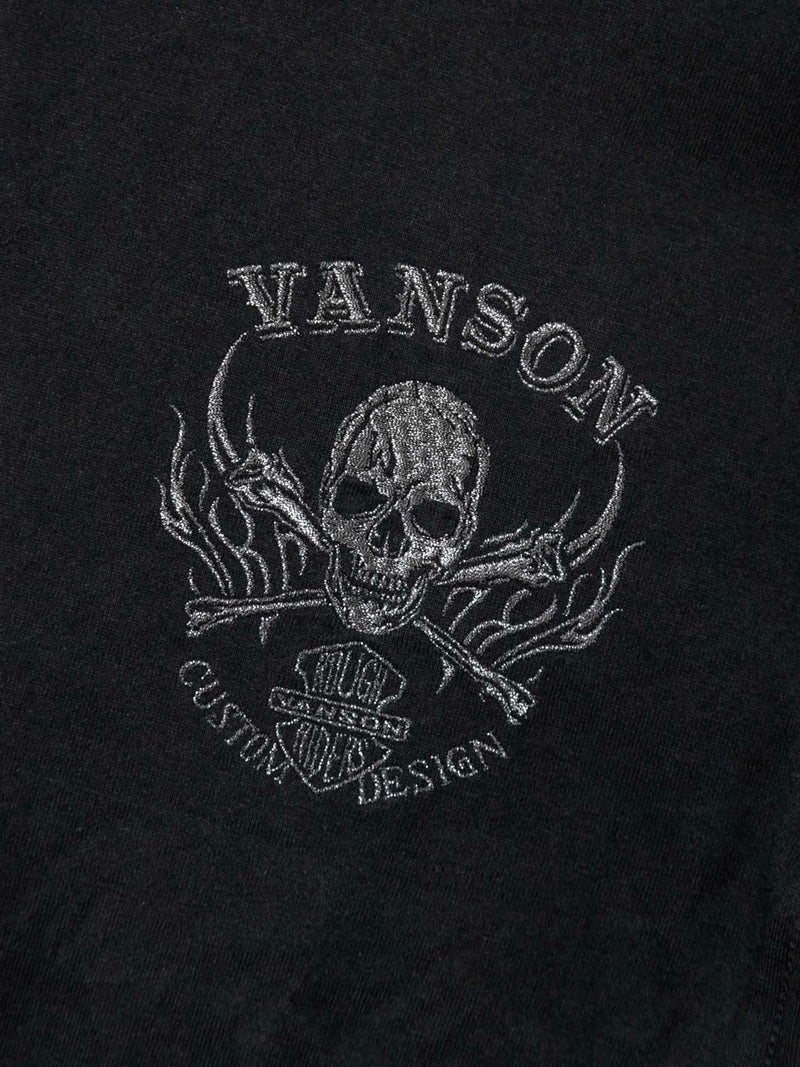 3. 【VANSON】“スカルファイヤー”モノトーン刺繍Tシャツ