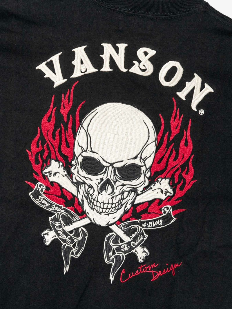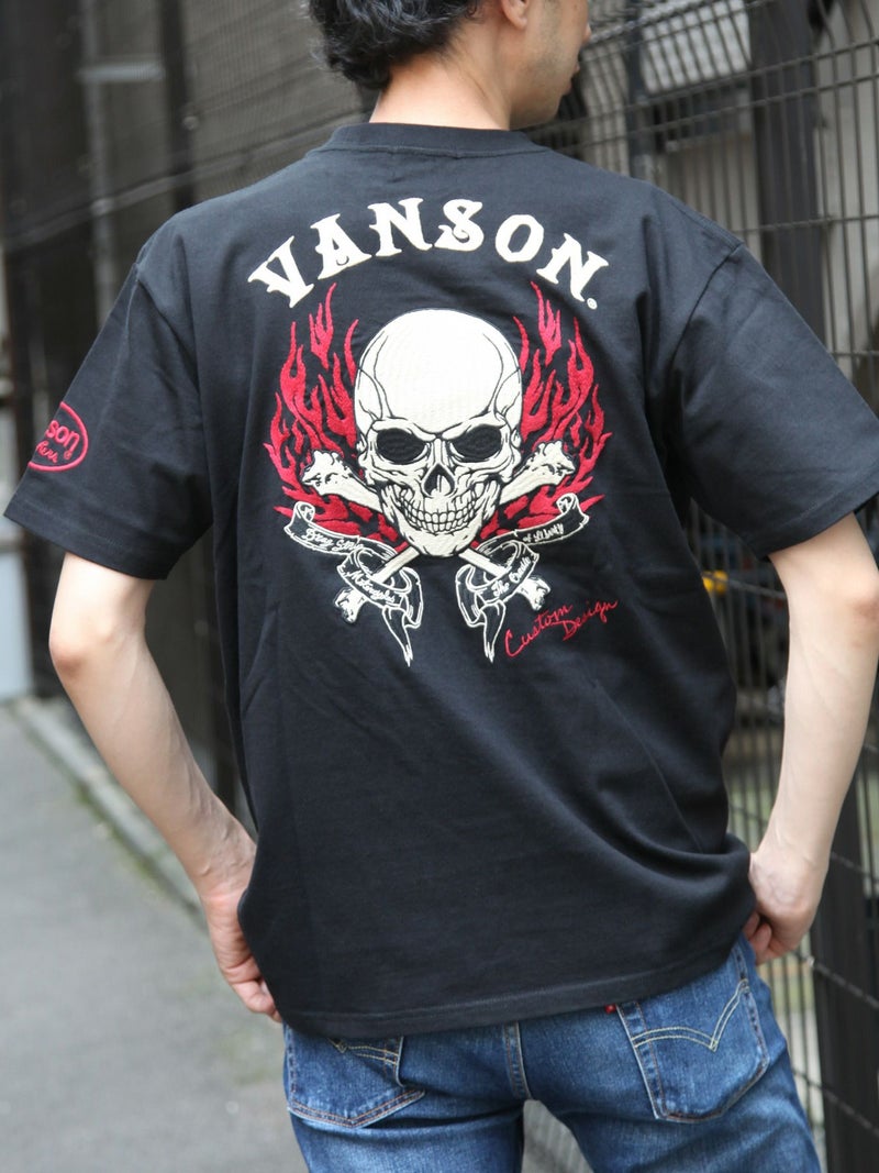 - 【VANSON】≪55着限定≫“スカルファイヤー”総刺繍Tシャツ〔別注:全国共通カラー〕