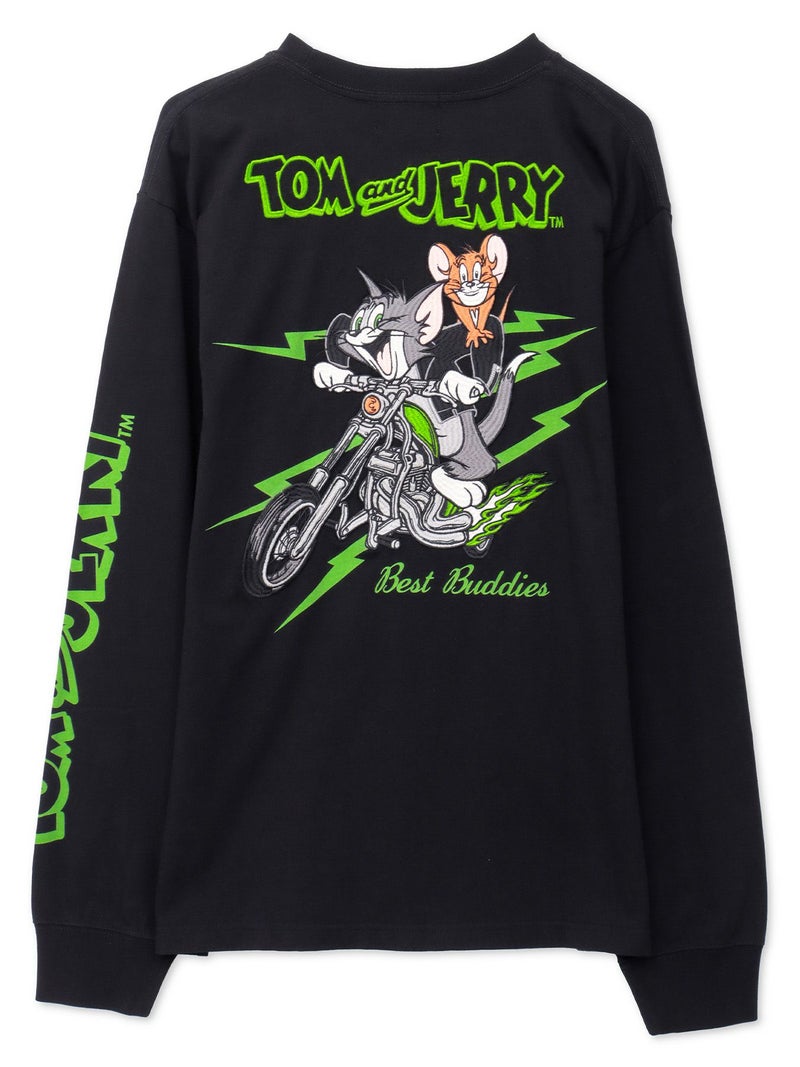 - 【NEVERMIND×TOM and JERRY】“バイカーズトム&ジェリー”刺繍入りロンT〔別注:web限定カラー〕