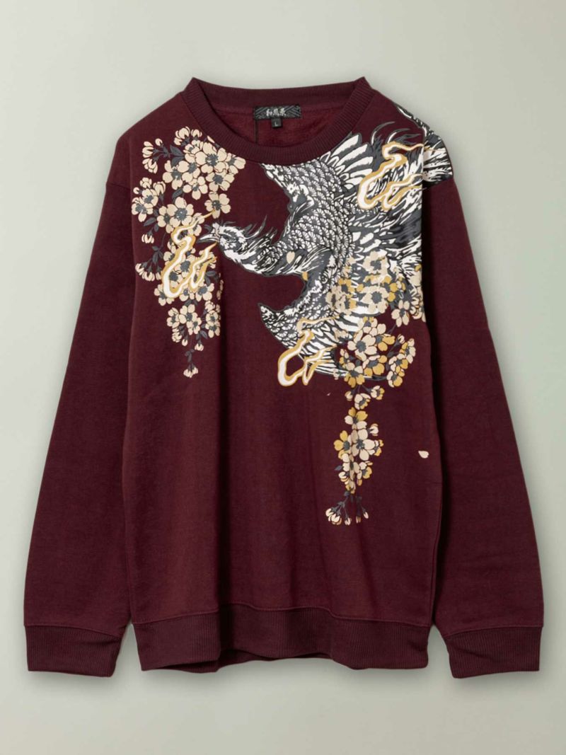 “桜鳳凰”プリント入り裏起毛トレーナー≪返品・取寄対応不可≫
