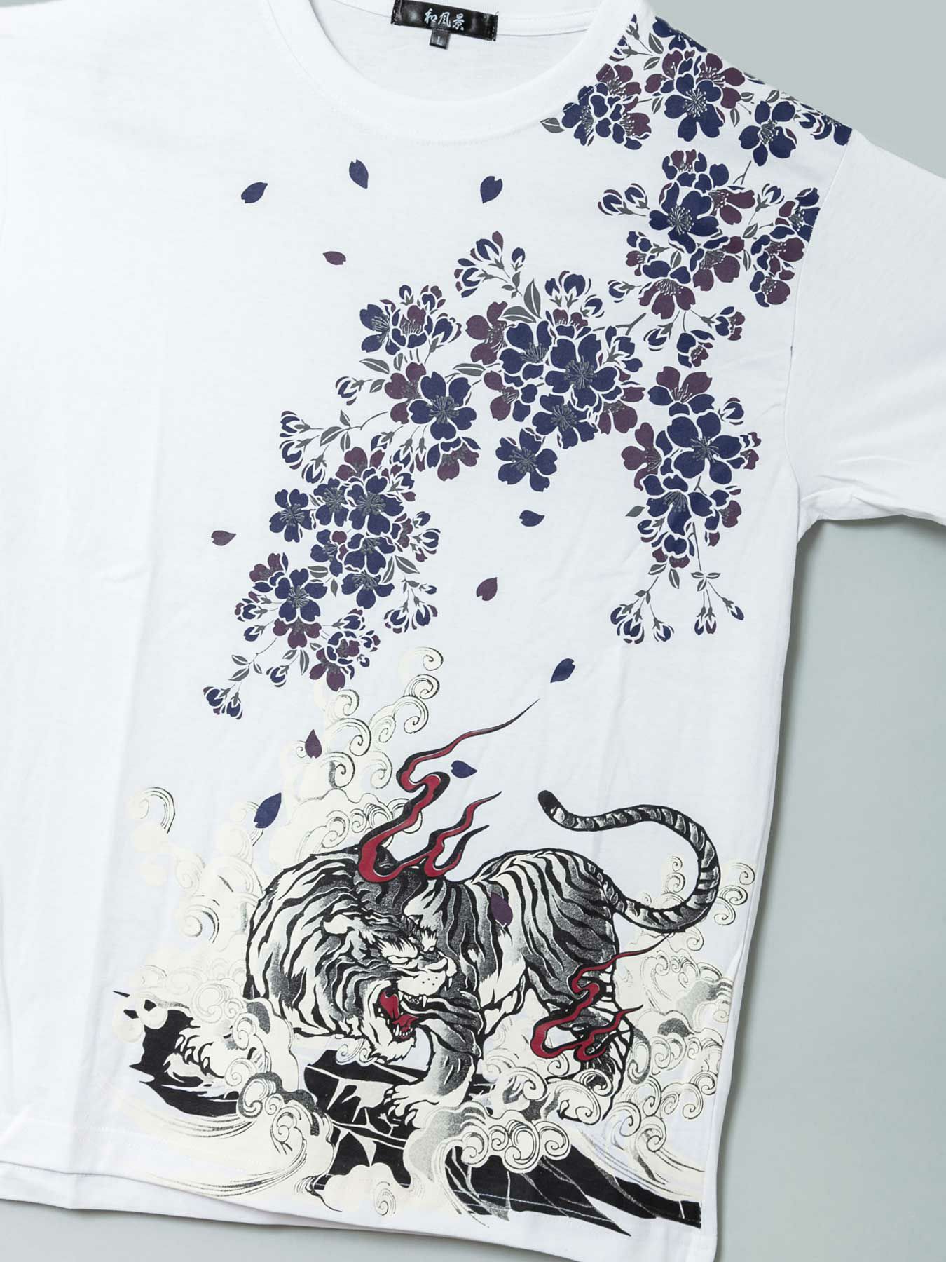 5. 【和風景】“虎と桜”プリント天竺ロンT≪返品・取寄対応不可≫