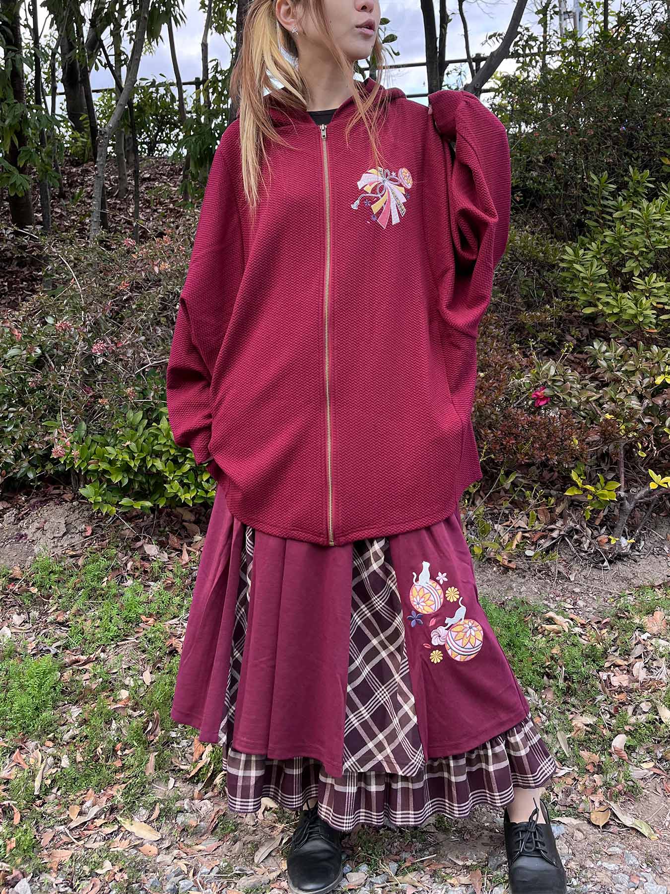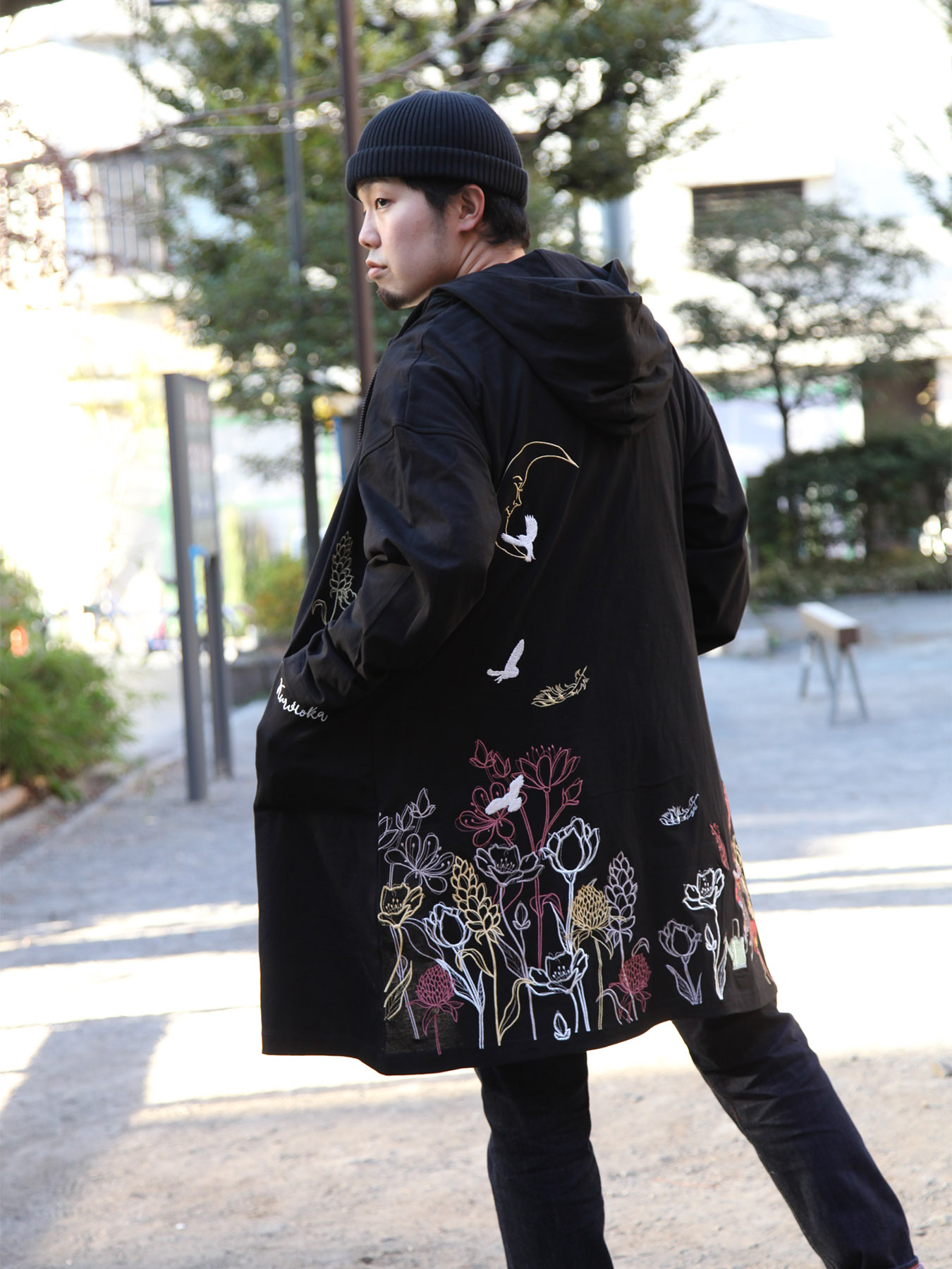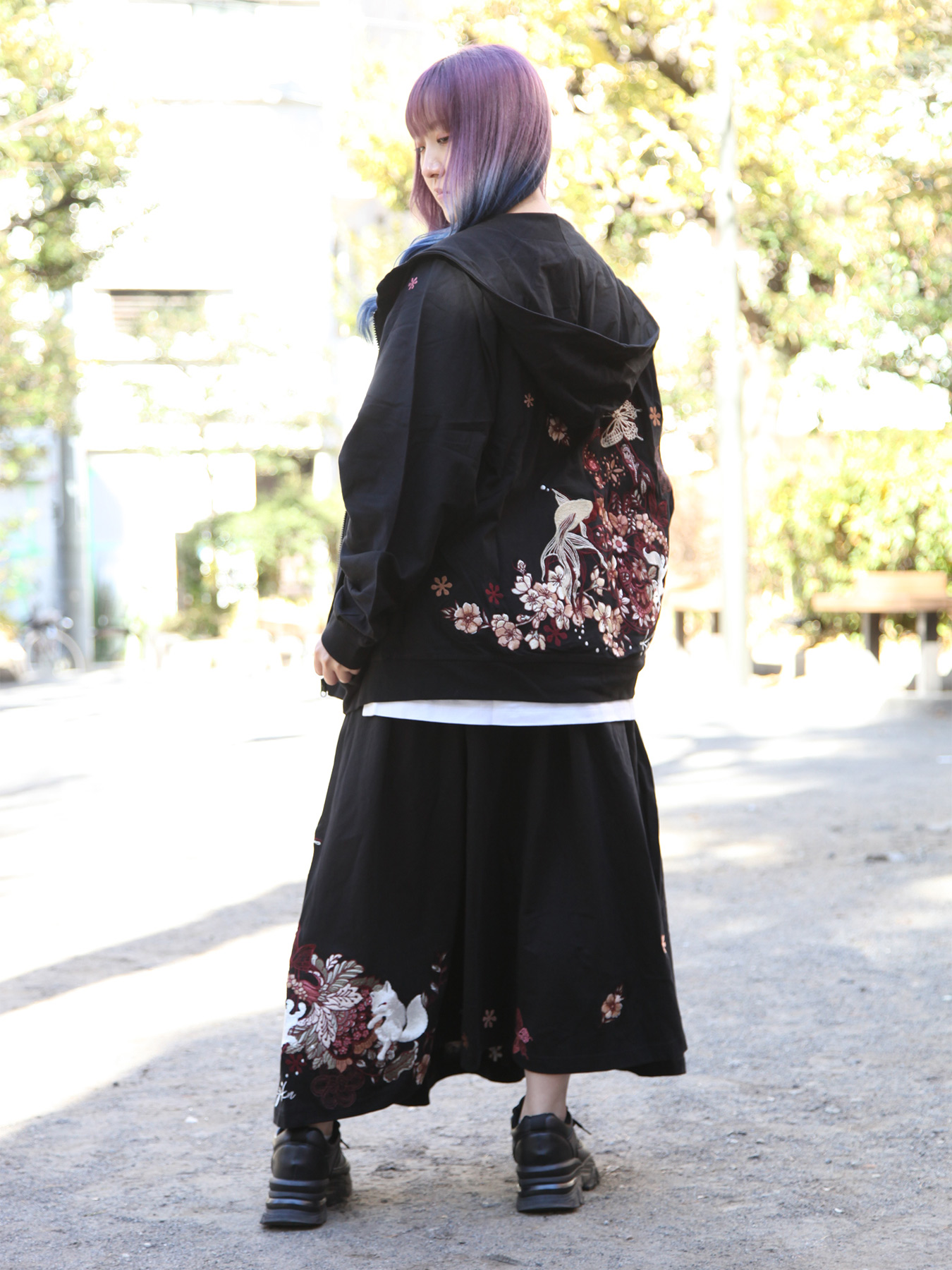 “フラワーペイズリー”総刺繍ドルマンZIPパーカー19,580円(税込)