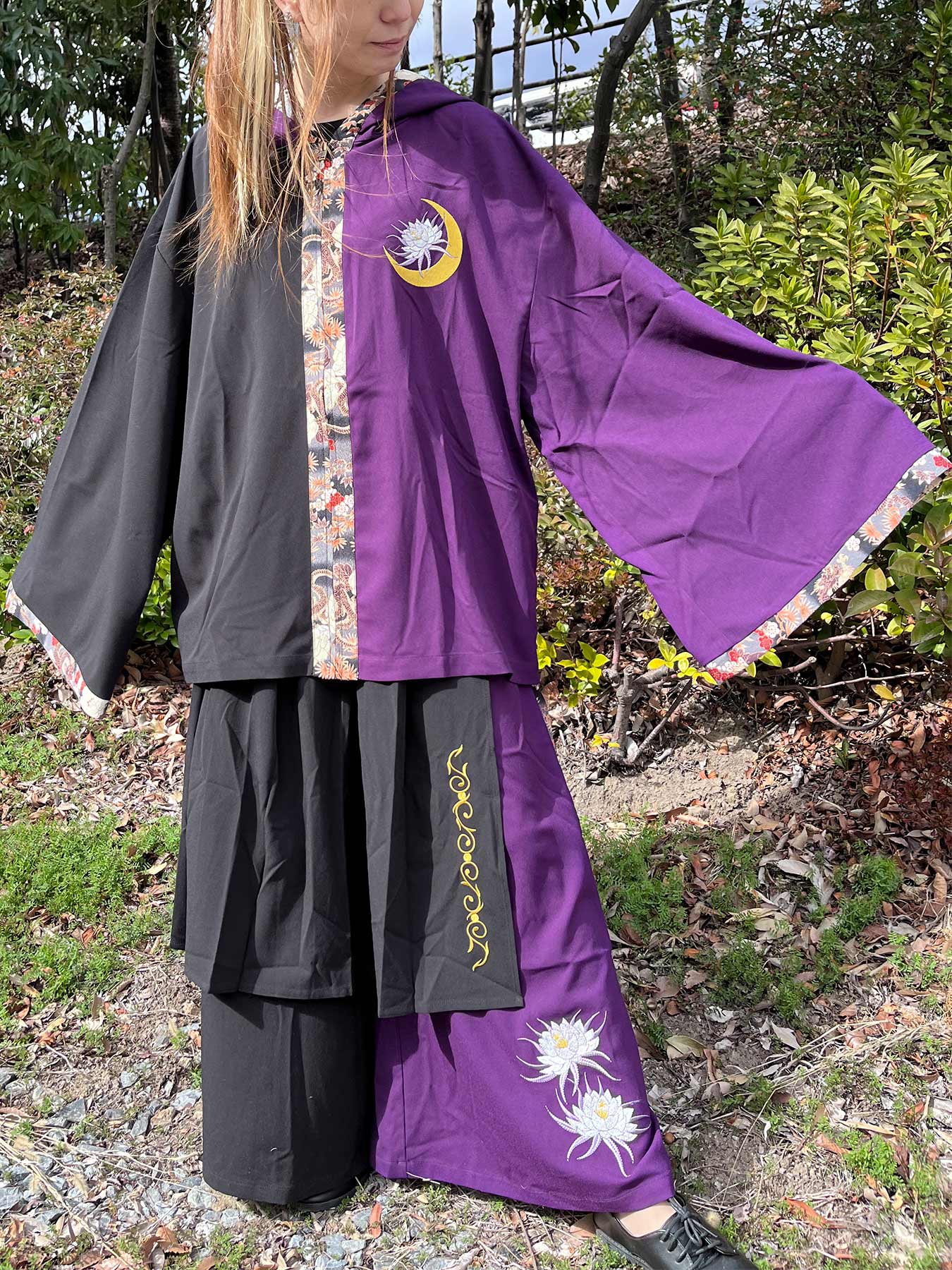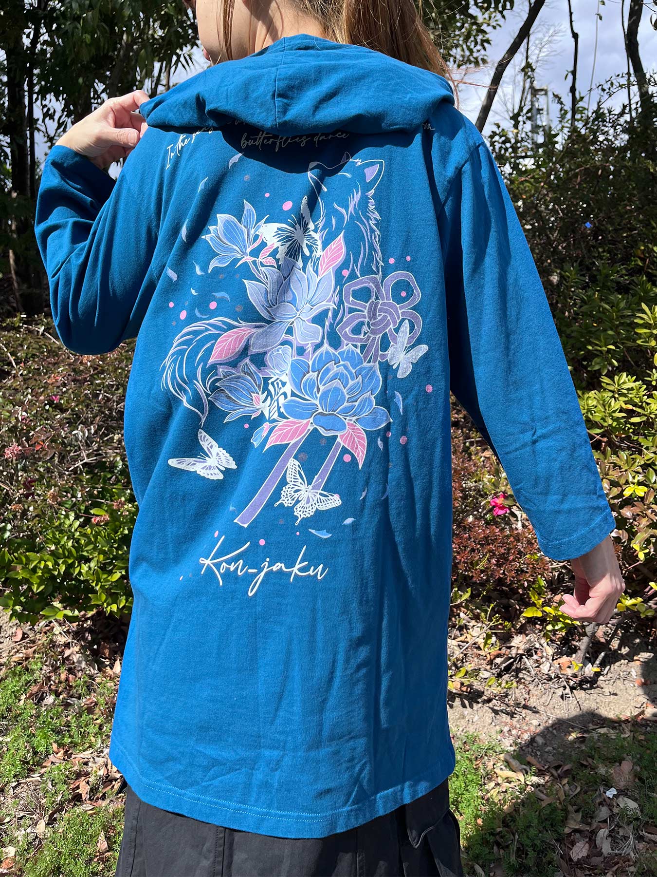 “狐と木蓮の花に蝶が舞う”総刺繍7分袖ヘンリーネックプルパーカー12,980円(税込)