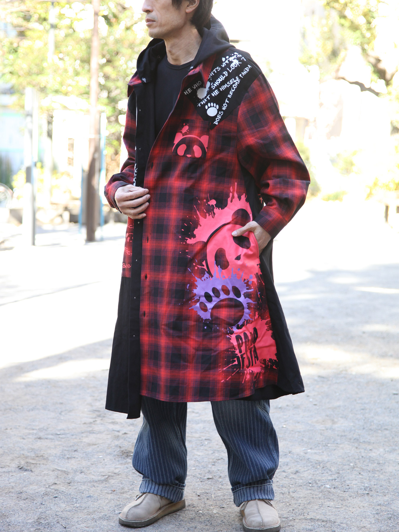 “ペイントパンダ”なりきりフード付きチェックロングシャツコート〔別注〕16,990円(税込)