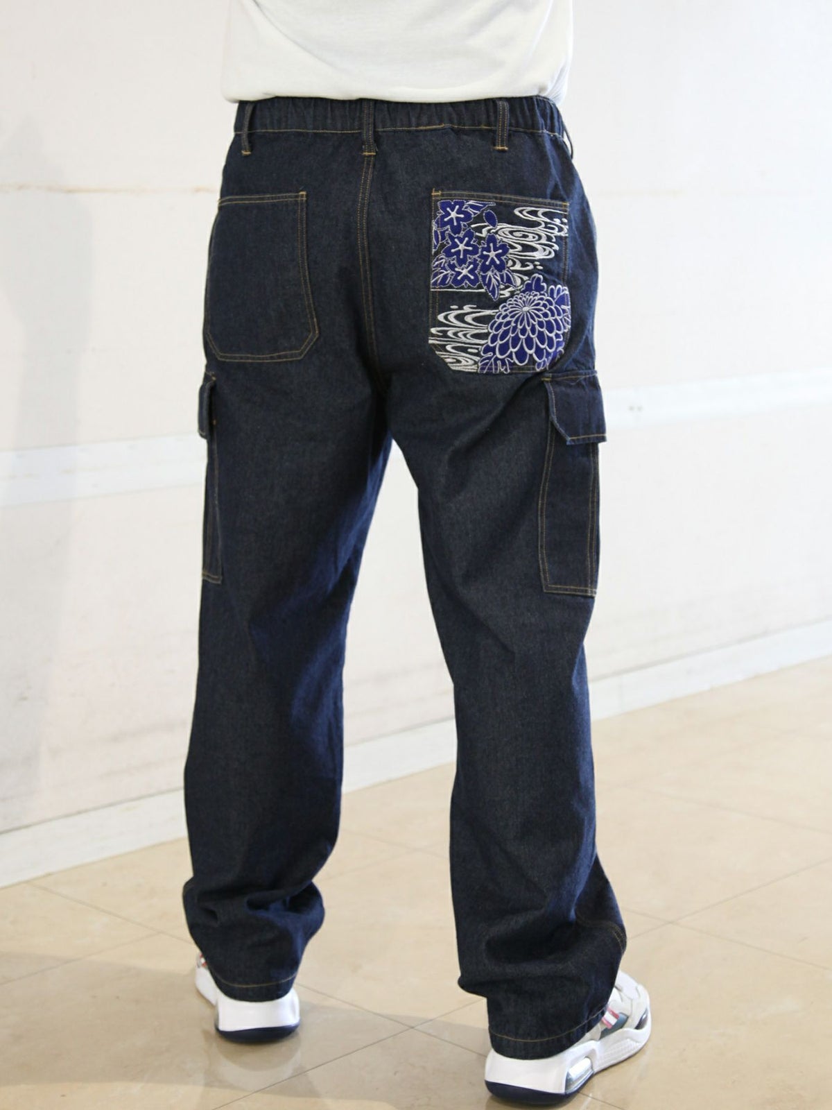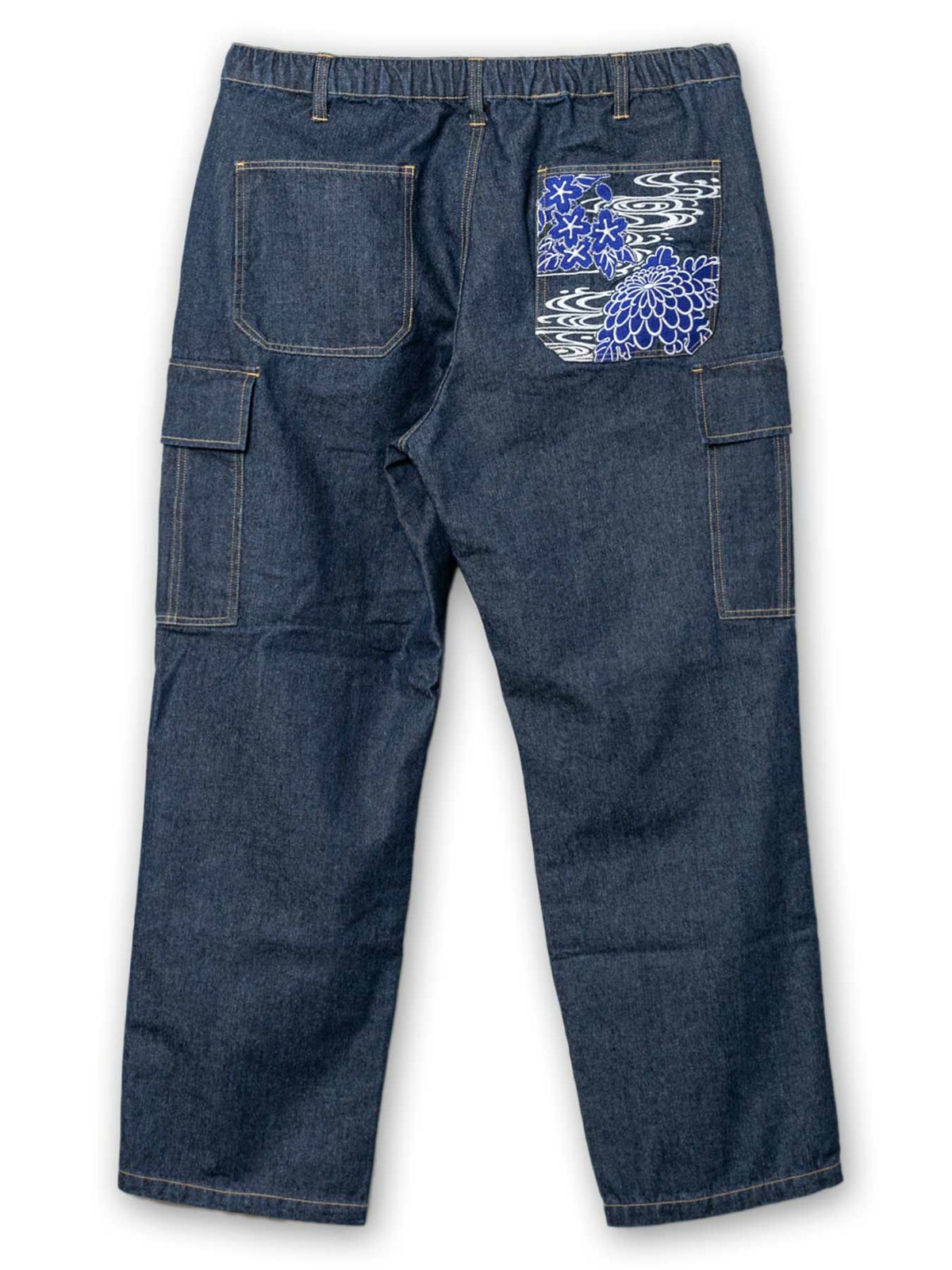 他の画像を見る ≪20%OFF≫【雅結】菊と桜流水刺繍デニムカーゴパンツ≪返品・取寄対応不可≫ 定価 ¥ 8,250 のところ ¥ 6,600 税込 【モデルサイズ:H171cm / Lサイズ着用】 売切れ カートへ追加 お気に入りに登録する